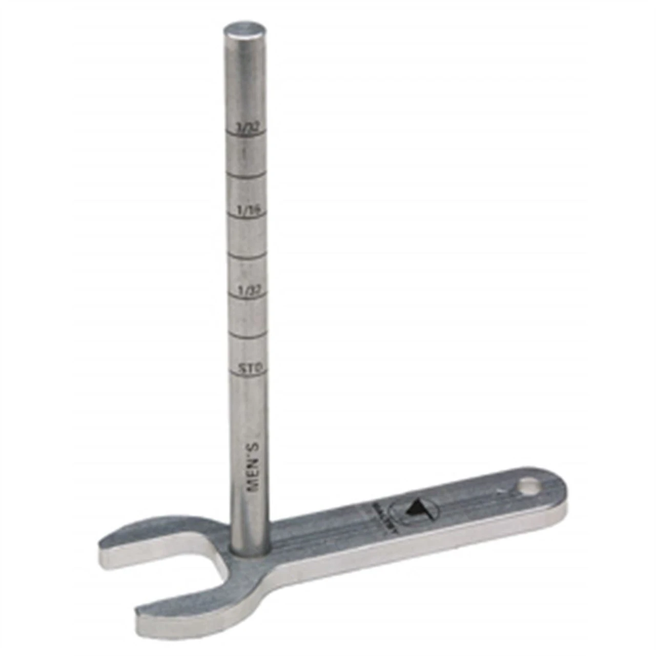 A handy and ingenious tool for determining grip diameters. Simply slip the open end of the gauge opening over the grip and slide the gauge up until the sides of the gauge are snug against the grip. Then read the corresponding measurement off the measuring rod. Instant grip sizing!